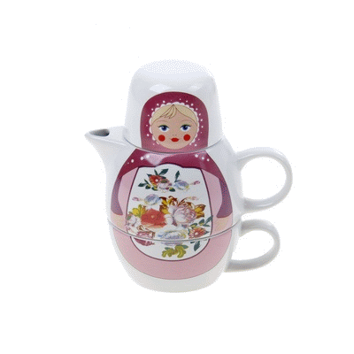 Набор чайный "Матрешка жостовская", 2 предмета: чайник заварочный 500мл, кружка 220мл-18cm