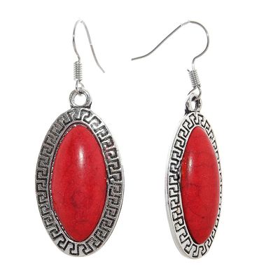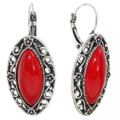 Серьги "Натурель" эллипс, цвет красный в чернёном серебре