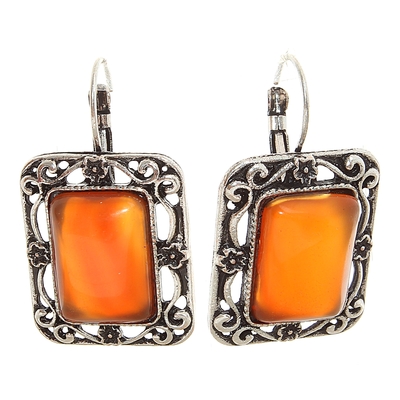 Серьги восток "Сердолик" прямоугольник в оправе