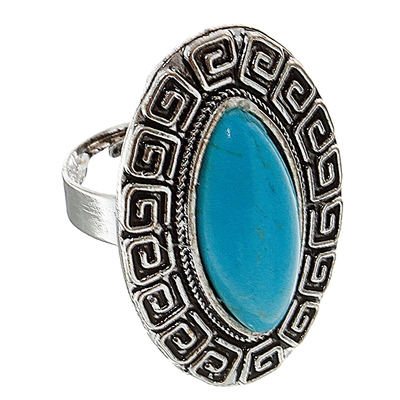 Кольцо "Бирюзовый мир", эллипс с орнаментом, в чернёном серебре