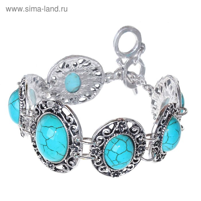 Браслет в металлической оправе "Бирюза новая", овал