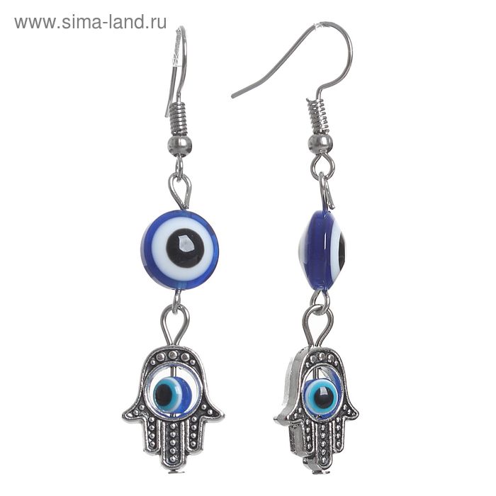 Серьги ассорти "Оберег" хамса и глазик, цвет синий в серебре