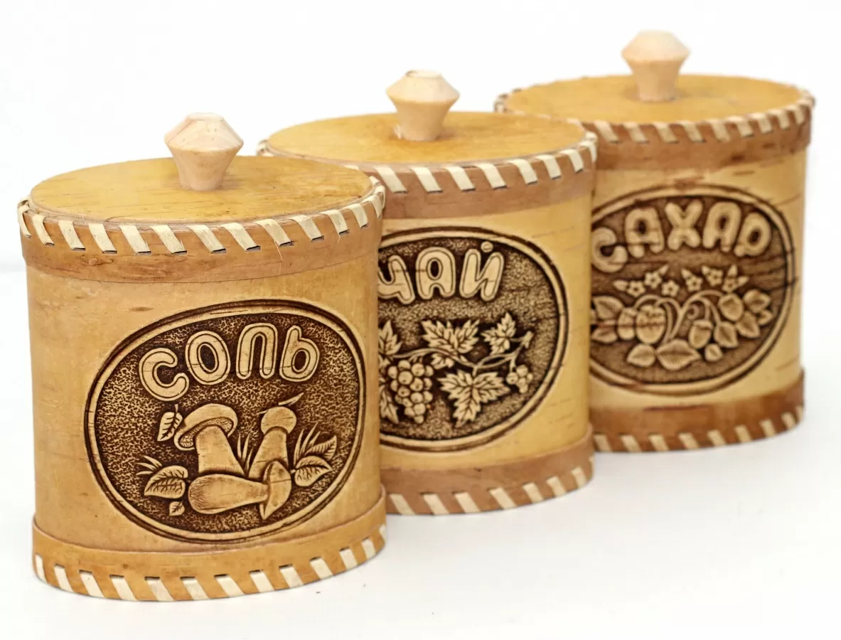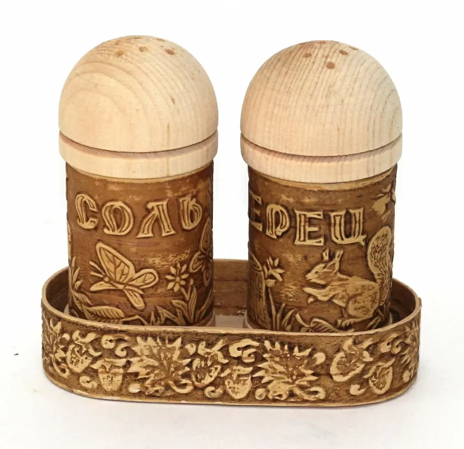 Набор для специй из бересты в ассортименте с надписями "Соль", "Перец"